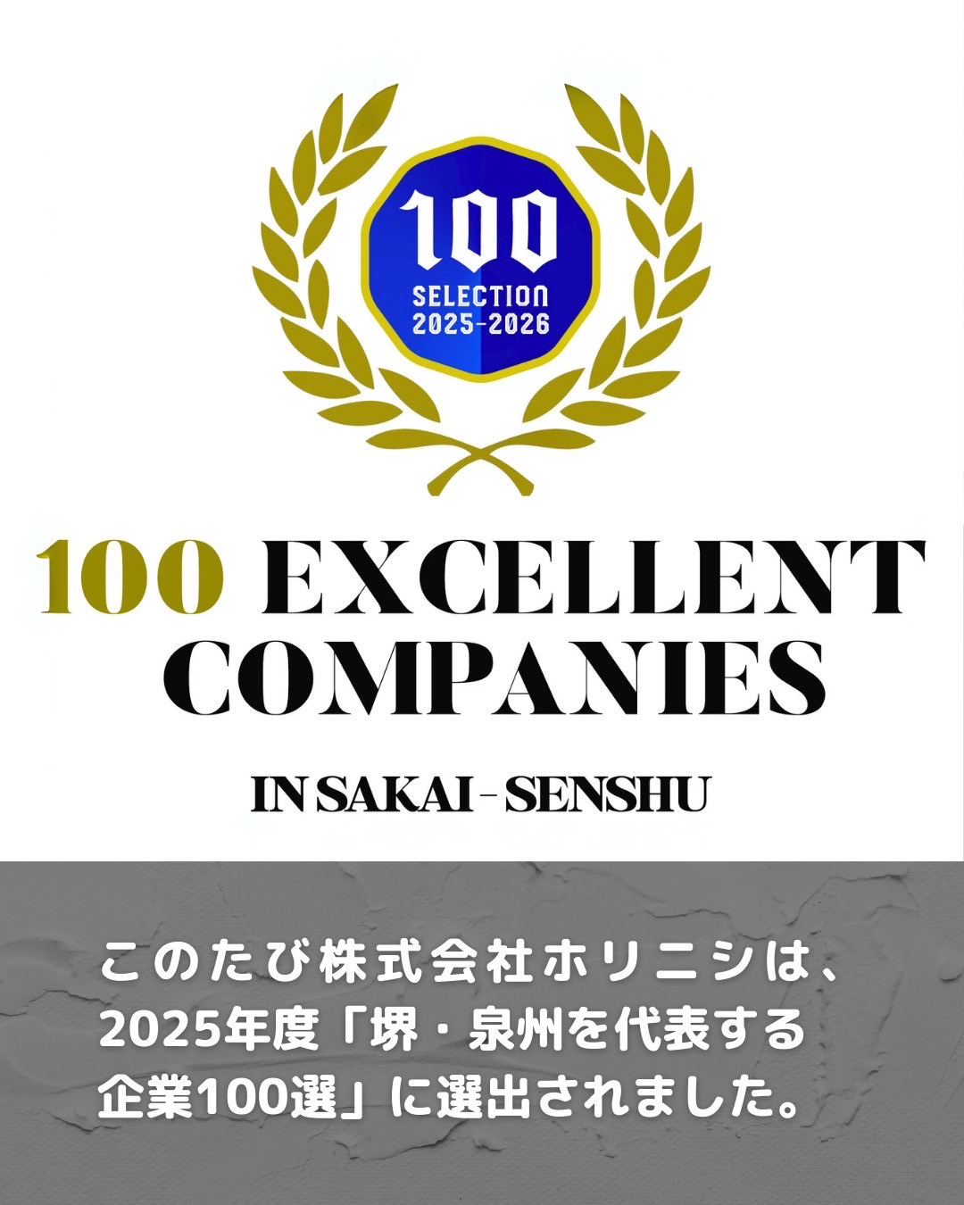 このたび株式会社ホリニシは、2025年度「堺・泉州を代表する企業100選」に選出されました。