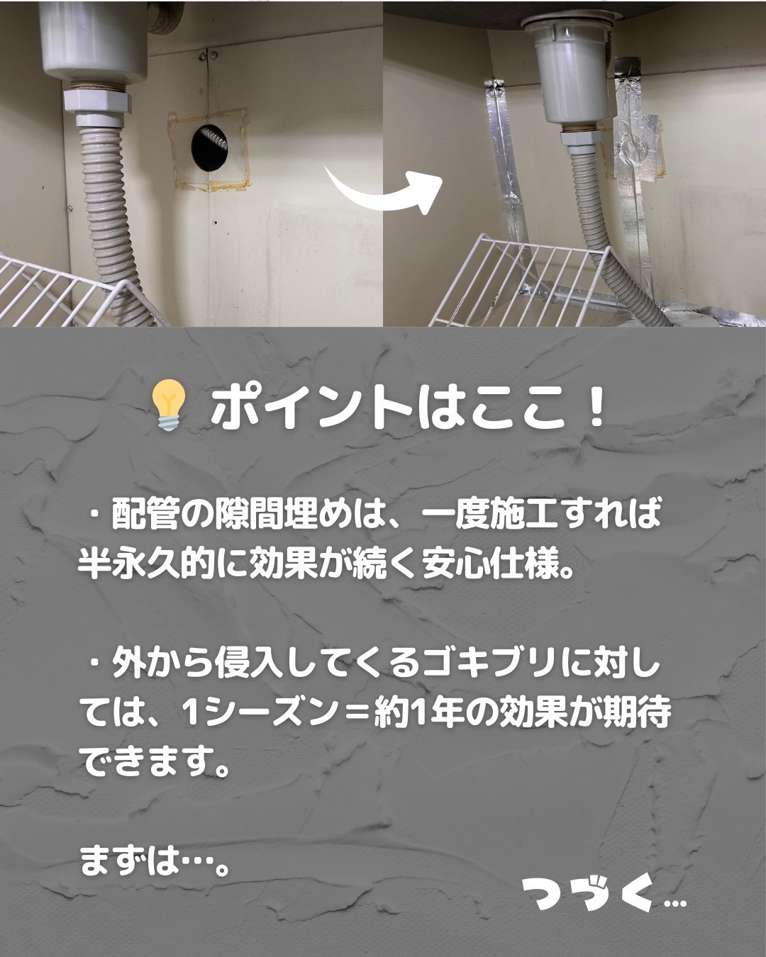 ・配管の隙間埋めは、一度施工すれば半永久的に効果が続く安心仕様。