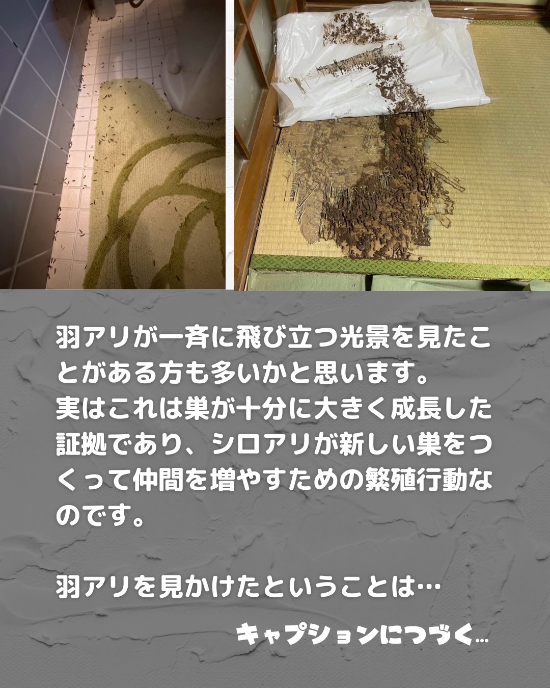 実はこれは巣が十分に大きく成長した証拠であり、シロアリが新しい巣をつくって仲間を増やすための繁殖行動なのです。
