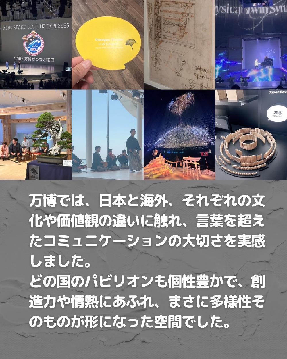 万博では、日本と海外、それぞれの文化や価値観の違いに触れ、言葉を超えたコミュニケーションの大切さを実感しました。