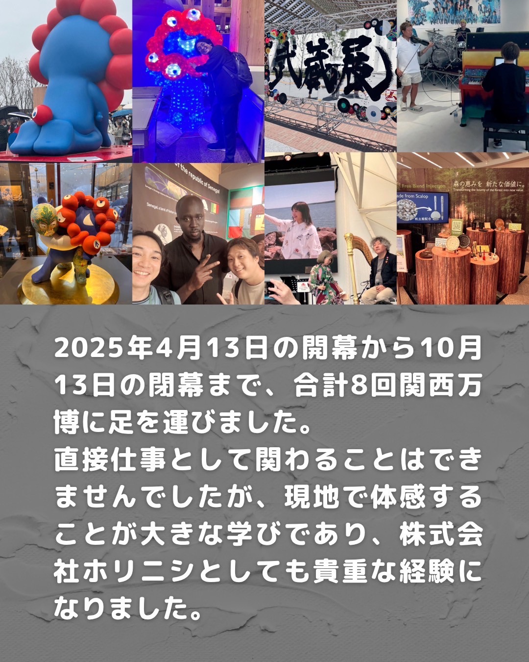 株式会社ホリニシとして、万博に込められていた「共創」「多様性」「挑戦」という理念は、私たちの目指す姿と重なります。